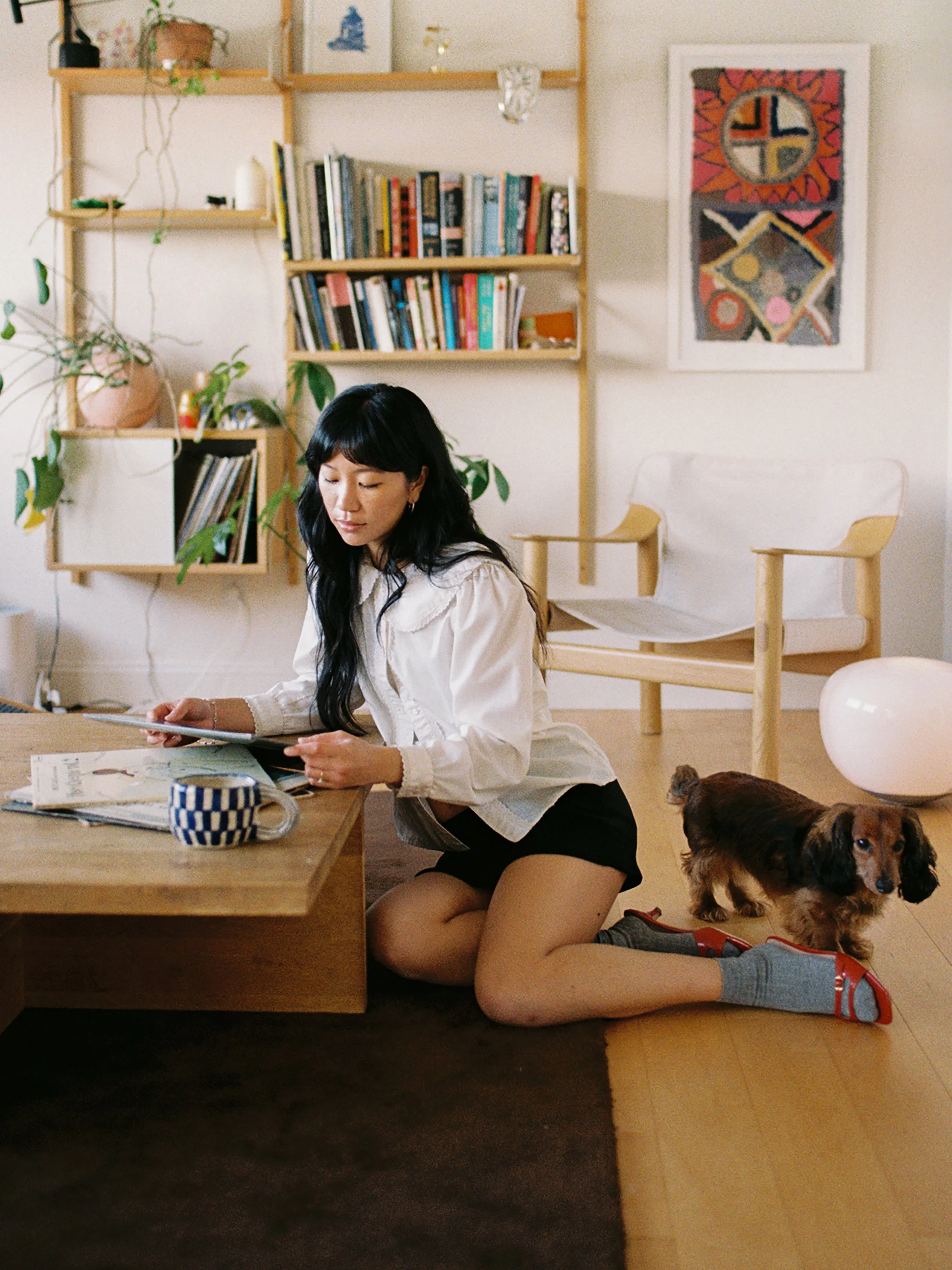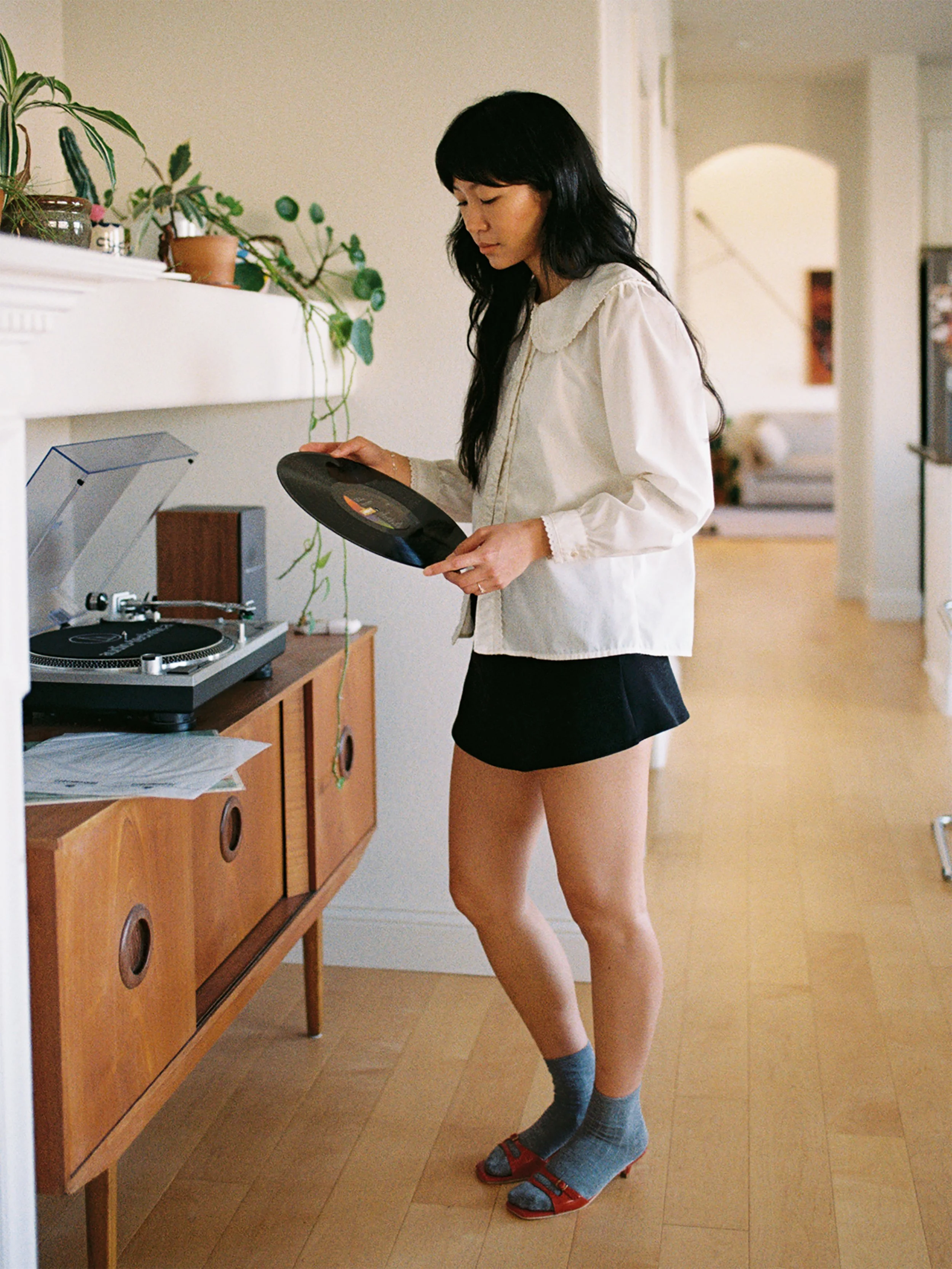 But when she is, she returns to simple rituals: watering her plants, playing records, scanning film and Polaroids, spending time with her dog.